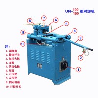 UN-100型加长钳口活动行程对焊机,是根据用户要求特意设计定做的对焊机。采用全铜线包制作的变压器,性能稳定、使用时间长等优点。焊接1000平方毫米以下低碳钢。以及焊接适当的有色金属。是电线电缆、铁丝制品、钢丝制品、金属丝网、水泥制品、建筑工地、防滑链条制造、等行业的有力工具。